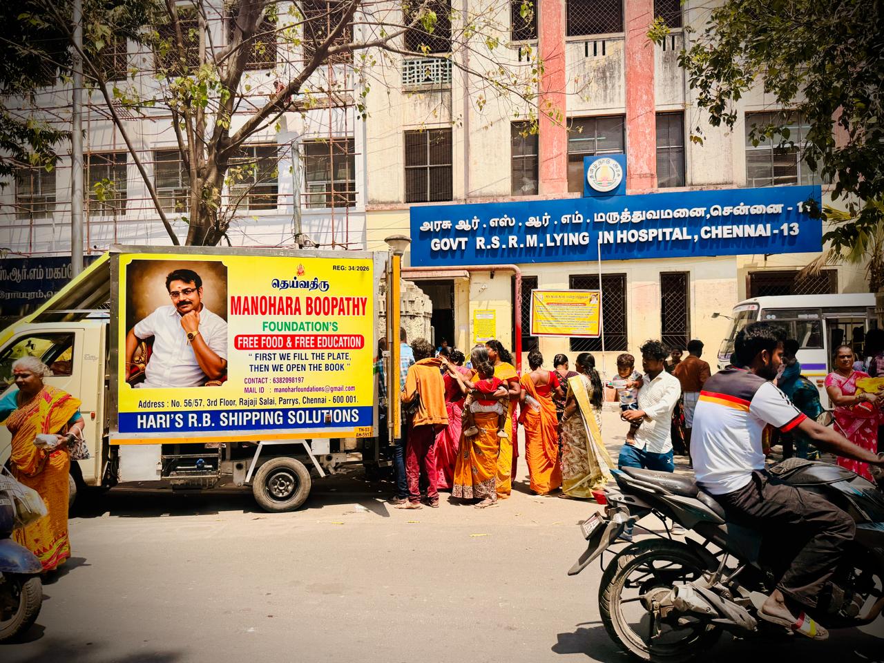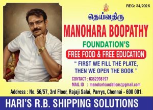 சென்னையில் ஆர் எஸ் ஆர் எம் மருத்துவமனை அருகில், தெய்வத்திரு ஐயா மனோகர் பூபதி அவர்களின் நினைவாக தொடங்கப்பட்ட மனோகர் பூபதி அறக்கட்டளை சார்பில் இன்று (மார்ச் 6) முதல் தினசரி அன்னதானம் வழங்கும் நிகழ்ச்சி தொடங்கப்பட்டது.